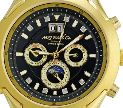 | | A Tyras számlapján nyolc valódi, természetes gyémánt csillog, számlapját a pointer megoldású hónap, nap, 24 órás kijelzés, és a nagy (BIG DATE) kétablakos dátumkijelzője teszi különlegessé. Átlátszó hátlapján át látható az automata szerkezet "MZI" lézergravírozott díszítéssel készült rotorja is.